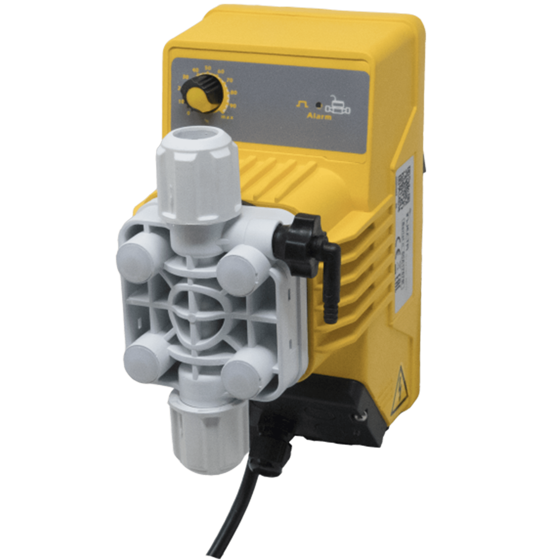 - Głowica pompy: PVDF-C (mieszanka PVC i PVDF zapewniająca doskonałe właściwości mechaniczne i wyższą odporność chemiczną w porównaniu ze zwykłym PVC),